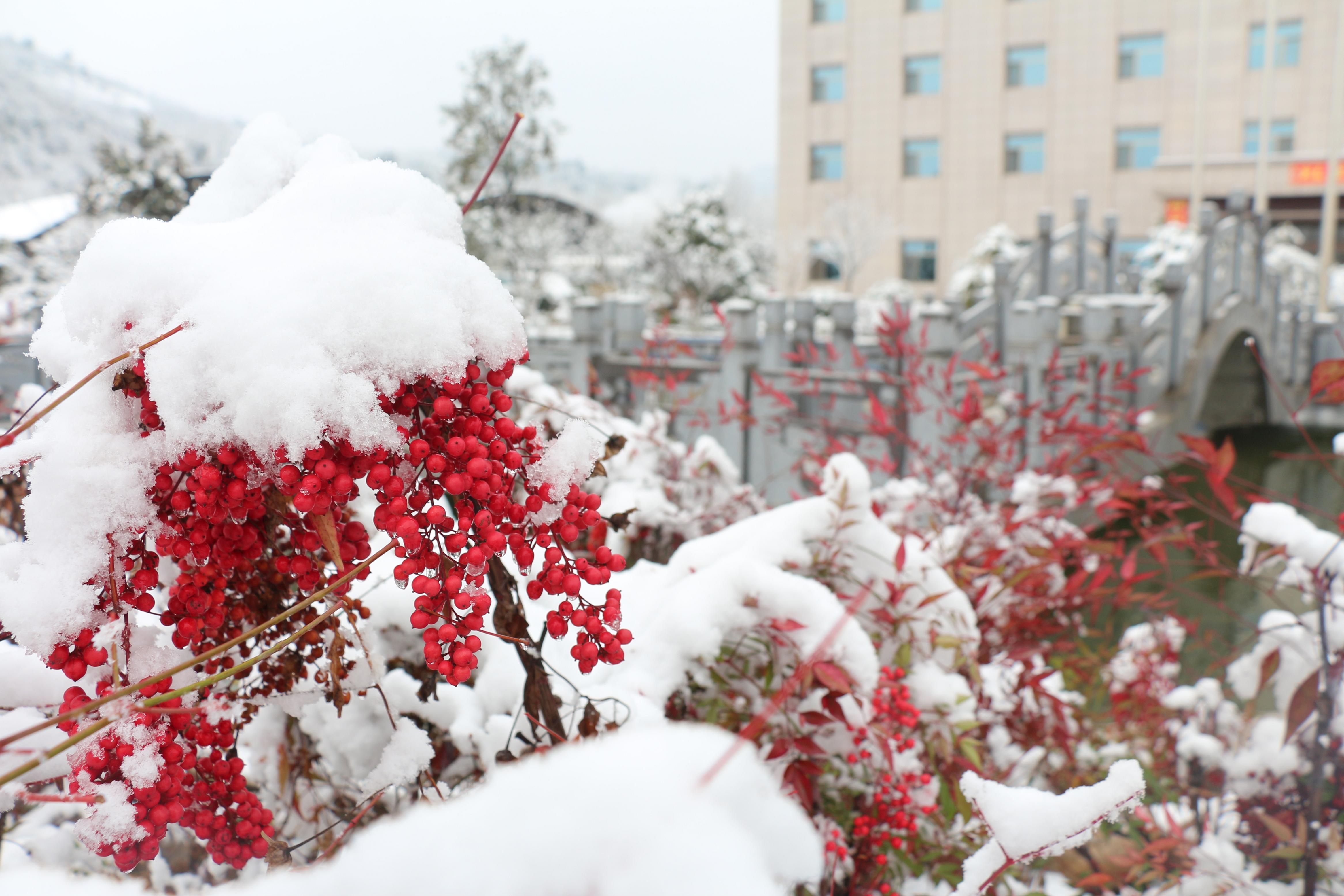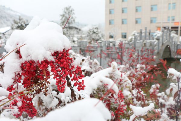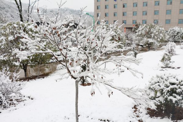 初春的第一場雪,把徽縣這座美麗的江南小城裝扮的更加俊俏了,然而懋達(dá)公司院內(nèi)的花花草草,把春雪的美詮釋的更加完美。