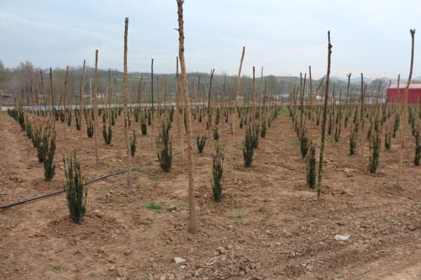 水陽鎮(zhèn)兩埡基地于2015年10月啟動建設(shè),目前已流轉(zhuǎn)土地2000畝,完成投資5400萬元,栽植了雪松、七葉樹、銀杏、紅葉石楠、紫薇、櫻花、桂花、女貞、廣玉蘭、欒樹、皂角等20個樹種共計13萬余株。銀杏樹鎮(zhèn)馬莊基地是公司投資建設(shè)的第二個苗木基地,于2016年9月啟動建設(shè),目前已流轉(zhuǎn)土地800多畝,完成投資1300萬元,栽植了紅豆杉和國槐兩個精品樹種共計3萬余株。