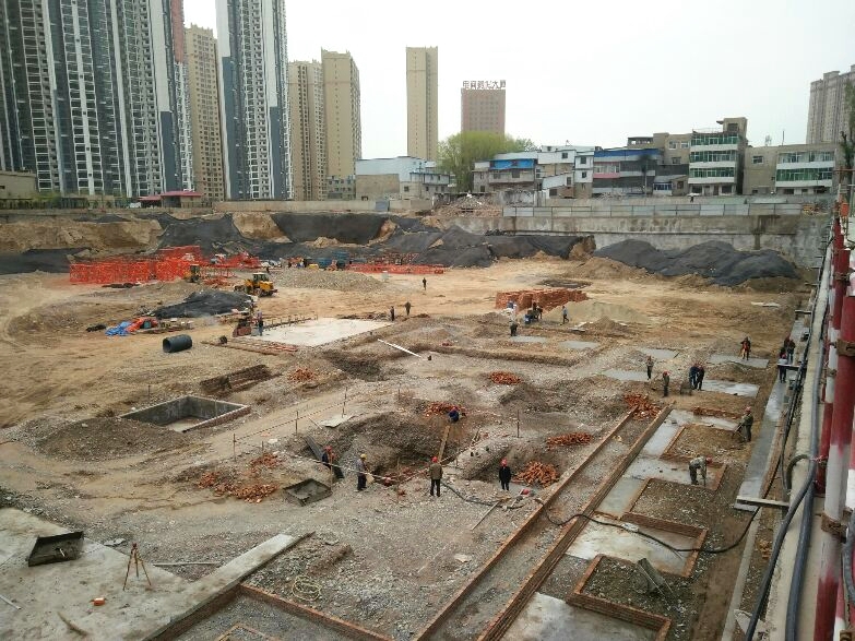 工程進(jìn)度:1#樓正在進(jìn)行基礎(chǔ)墊層、磚胎膜施工,5#樓已完成塔吊基礎(chǔ)磚模砌筑。