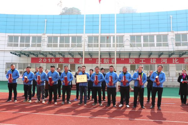 由中共徽縣委宣傳部、徽縣文化體育廣播影視局組織的2018年徽縣“慶新春”職工拔河比賽于2月27日上午在徽縣體育中心舉行,共46支隊伍參賽(男子組26隊,女子組20隊)。甘肅懋達建設(shè)工程有限公司組織男、女代表隊參賽。
