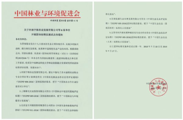 泓盛農(nóng)林公司被授予“中國生態(tài)良品(景觀園林類)標準化示范基地”稱號