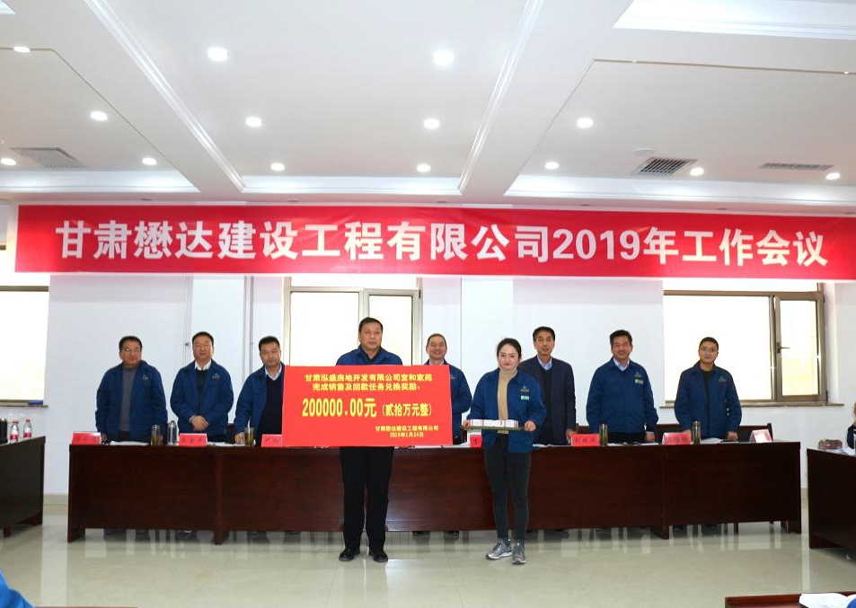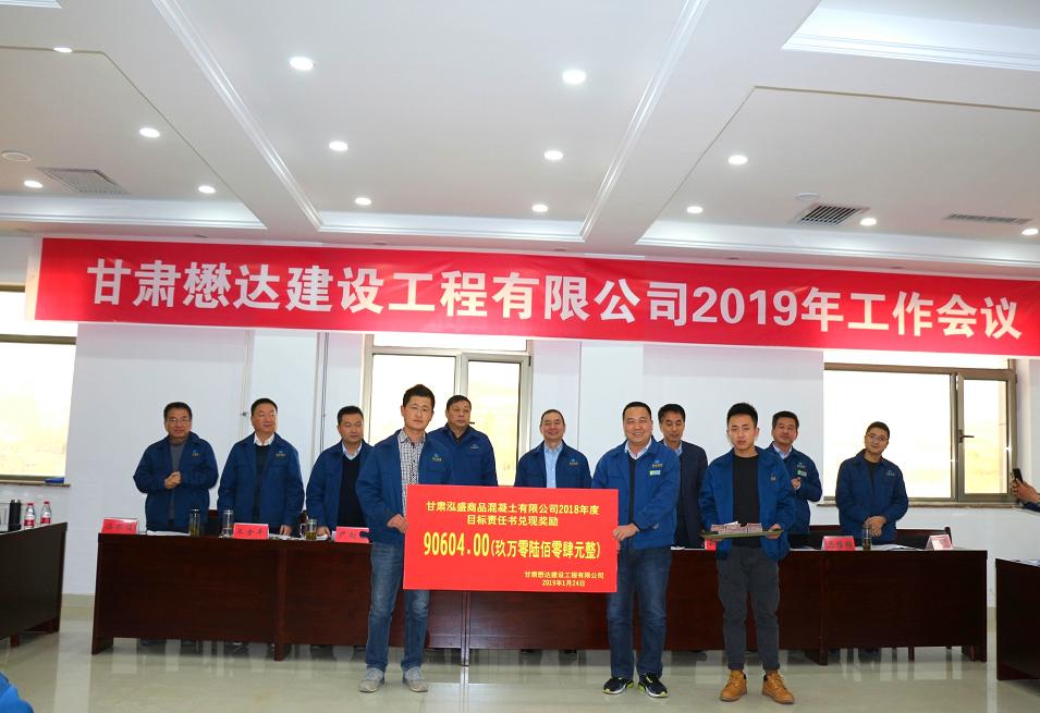 會議還對雁灘·金徽園商住小區(qū)、金徽酒隴南銷售公司員工公寓樓建設(shè)項目榮獲“2018年甘肅省建筑業(yè)文明工地”榮譽(yù)、泓盛商品混凝土有限公司超額完成外銷任務(wù)、泓盛房地產(chǎn)開發(fā)有限公司圓滿完成售房收款任務(wù)兌現(xiàn)獎勵。公司總經(jīng)理封曉成與泓盛商品混凝土有限公司、泓盛房地產(chǎn)開發(fā)有限公司負(fù)責(zé)人簽訂了2019年度目標(biāo)責(zé)任書。