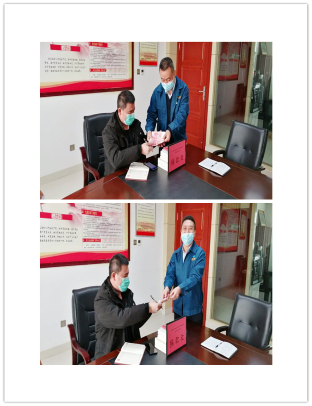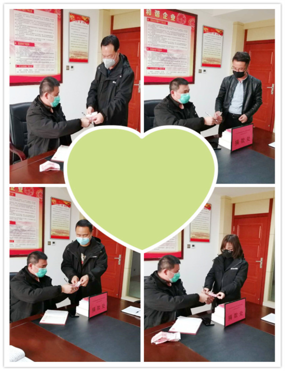 黨支部書記、公司副總經(jīng)理尹向宏,支部預(yù)備黨員、公司副總經(jīng)理邵曉輝分別將愛心捐款交到了捐款處。