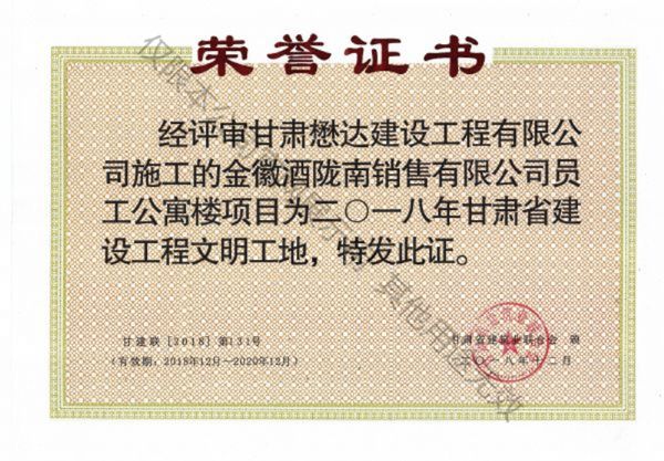 金徽酒隴南銷售有限公司員工公寓樓項(xiàng)目--2018年甘肅省建設(shè)工程文明工地