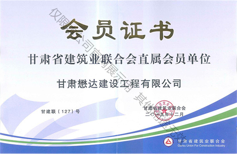 甘肅省建筑業(yè)聯(lián)合會(huì)直屬會(huì)員單位證書