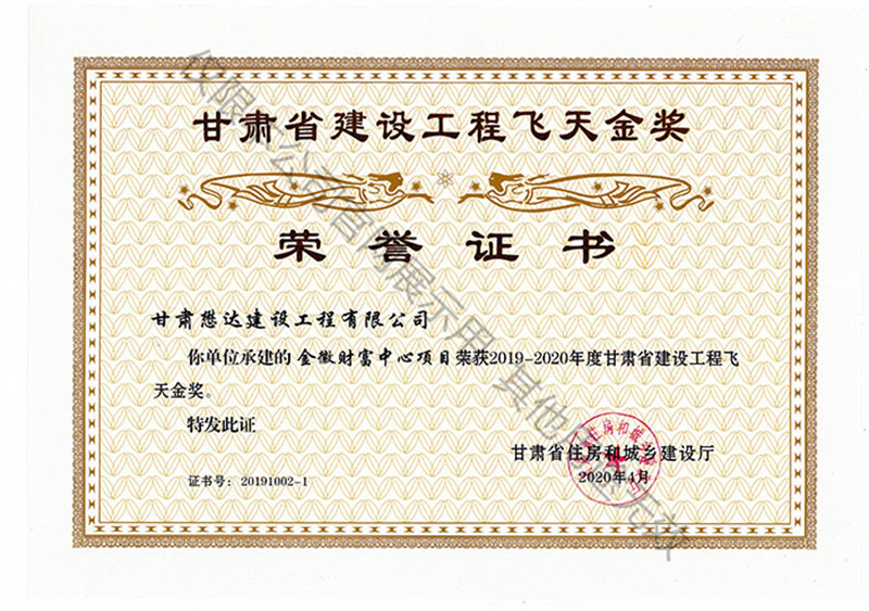 金徽財富中心項目——甘肅省建設工程飛天金獎