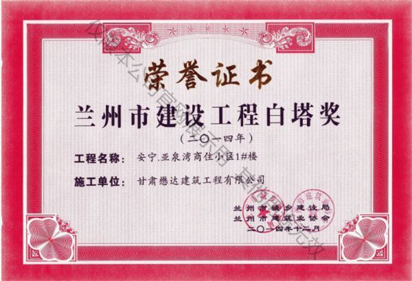 安寧.亞泉灣商住小區(qū)-2014蘭州市建設(shè)工程白塔獎