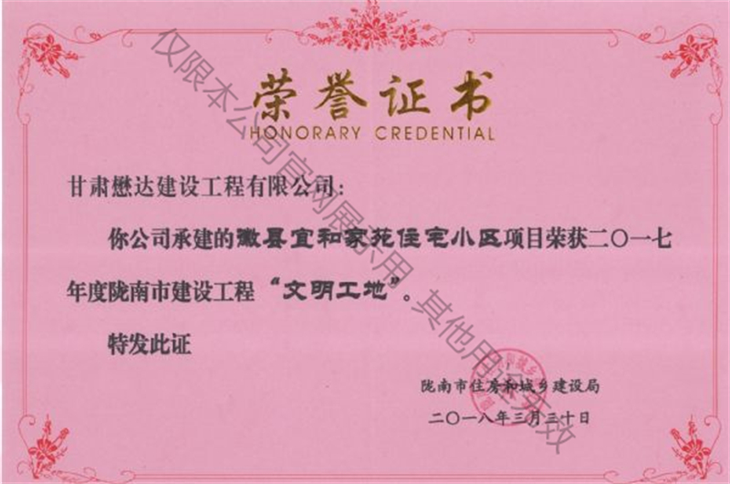 徽縣宜和家苑住宅小區(qū)工程--2017年度隴南市建設(shè)工程文明工地