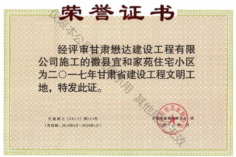 徽縣宜和家苑住宅小區(qū)工程--2017年度甘肅省建設(shè)工程文明工地