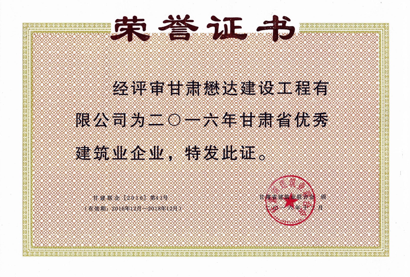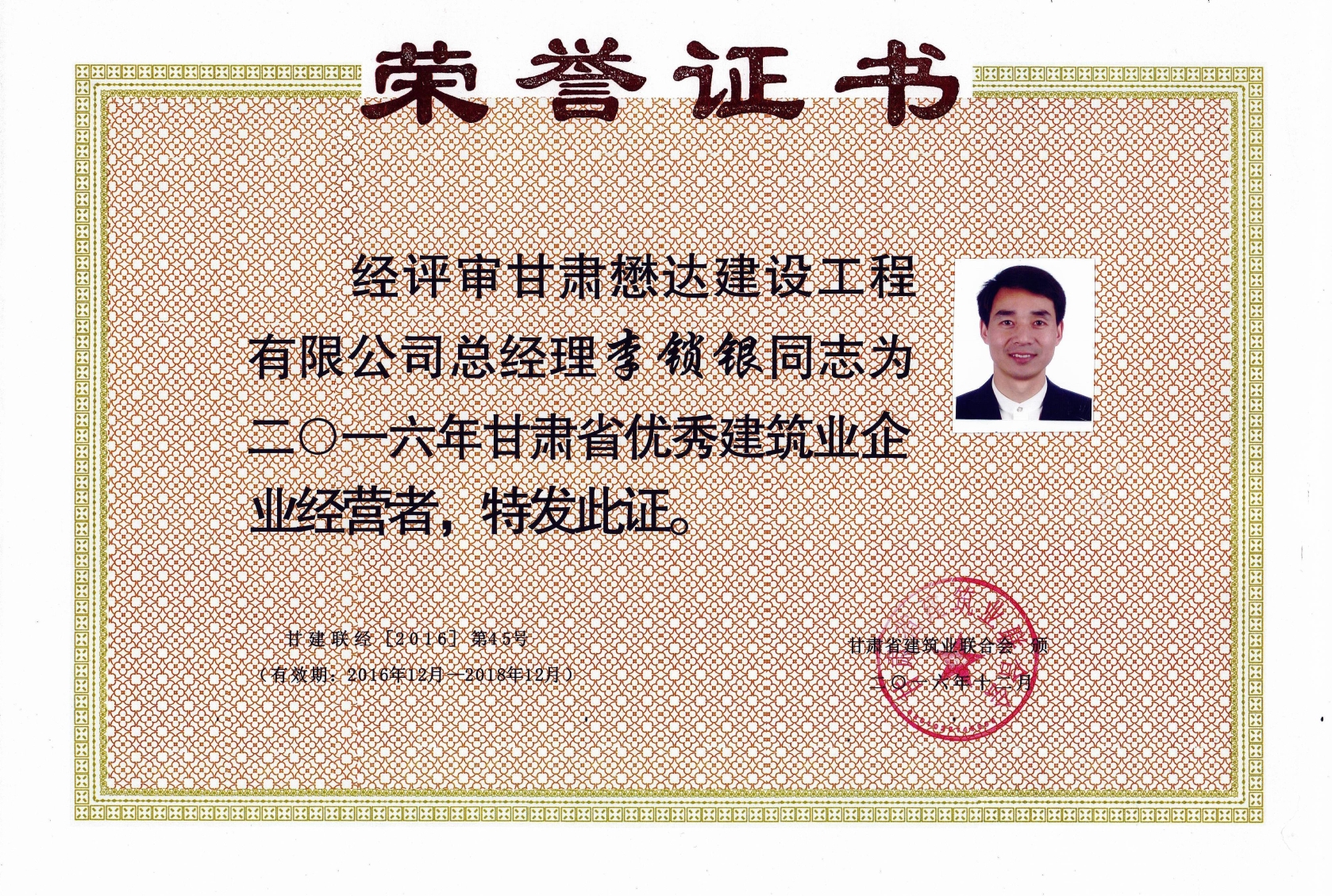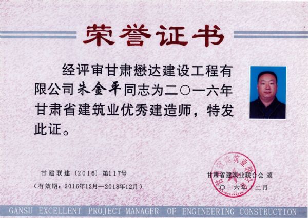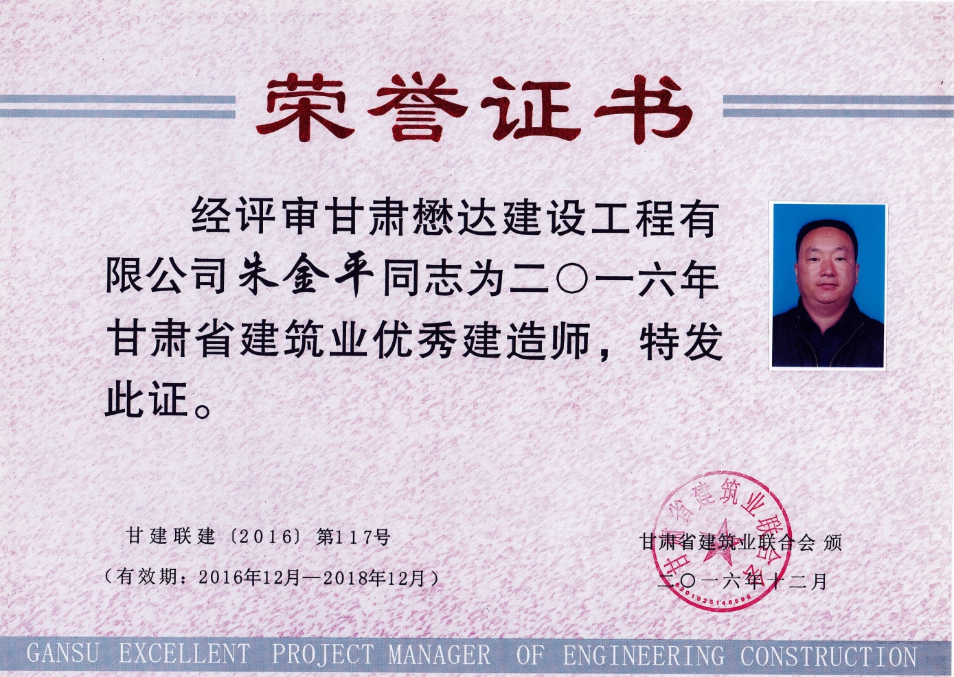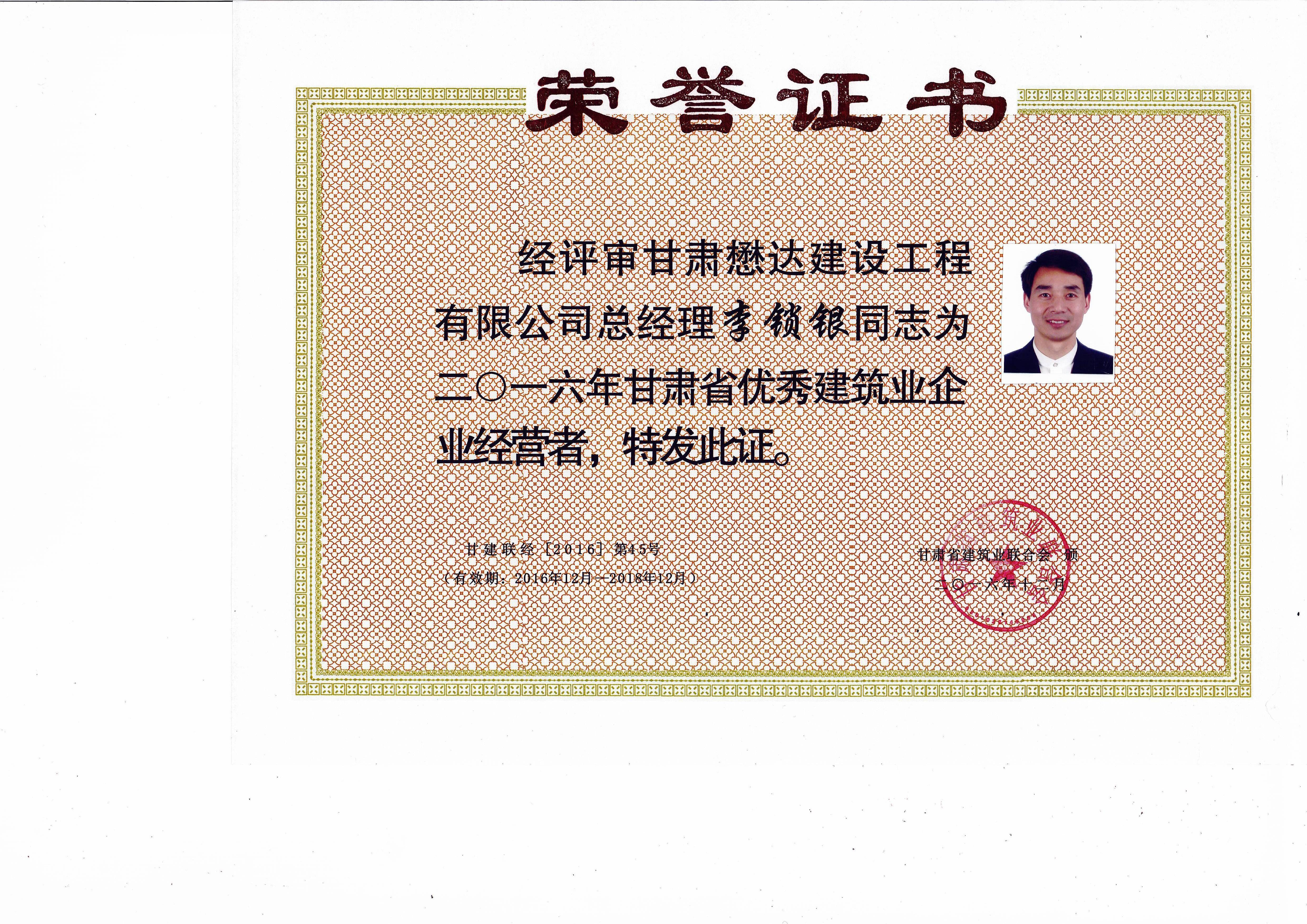 近日,甘肅懋達(dá)建設(shè)工程有限公司喜訊頻傳,在2016年甘肅省建筑業(yè)“三優(yōu)一文明”(優(yōu)秀建筑業(yè)企業(yè)、優(yōu)秀企業(yè)經(jīng)營者、優(yōu)秀建造師和文明工地)活動(dòng)中,公司獲得了“2016年甘肅省優(yōu)秀建筑業(yè)企業(yè)”,董事長李鎖銀獲得“2016年甘肅省優(yōu)秀建筑業(yè)企業(yè)經(jīng)營者”,總工程師朱金平獲得“2016年甘肅省建筑業(yè)優(yōu)秀建造師”榮譽(yù)。