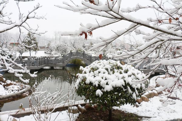 初春的第一場雪,把徽縣這座美麗的江南小城裝扮的更加俊俏了,然而懋達公司院內(nèi)的花花草草,把春雪的美詮釋的更加完美。