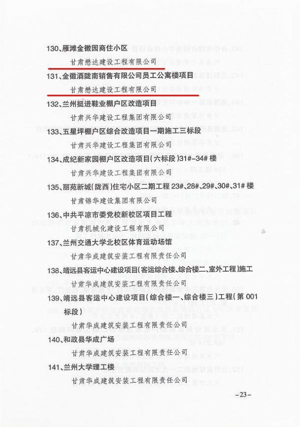 近日,2018年全省建筑業(yè)“三優(yōu)一文明”評選結(jié)果揭曉,甘肅懋達建設工程有限公司獲評“甘肅省優(yōu)秀建筑業(yè)企業(yè)”稱號,董事長李鎖銀榮獲“甘肅省優(yōu)秀建筑業(yè)企業(yè)經(jīng)營者”稱號,金徽酒隴南銷售公司員工公寓樓項目、雁灘金徽園金徽園商住小區(qū)獲評“甘肅省建設工程文明工地”稱號,馬維強、薛志偉、楊建平、郭小江等4人獲評“甘肅省建筑業(yè)優(yōu)秀建造師”稱號。