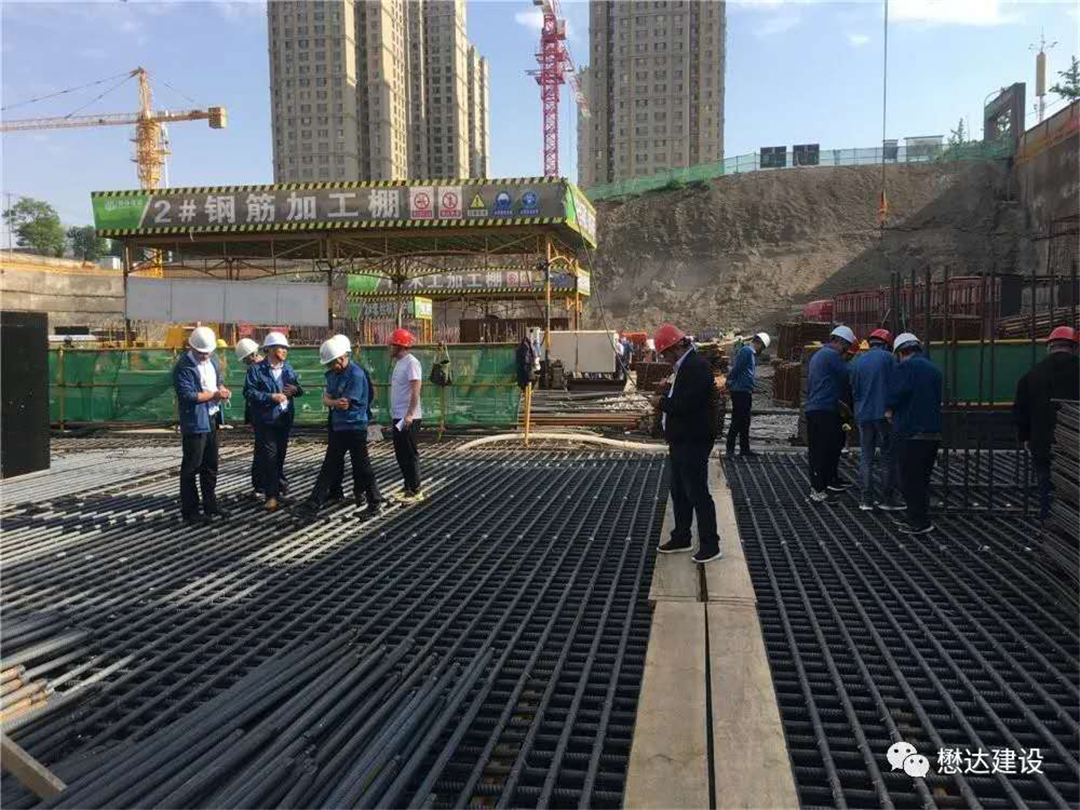 此次大體積砼施工具有澆筑方量大、時間長、施工難度大、工藝要求高、綜合協(xié)調(diào)量大等特點。公司領導對此次大體積筏板砼的澆筑工作也十分重視。公司董事長親臨現(xiàn)場檢查指導了筏板澆筑準備情況,公司生產(chǎn)副總帶隊檢查,總工程師帶領技術(shù)質(zhì)量部及徽縣與蘭州6個在建項目的相關(guān)領導和技術(shù)人員進行現(xiàn)場觀摩指導,領導和技術(shù)骨干們對項目工作提出了許多可操作性的意見;同時,為虛心學習大體積砼的澆筑施工,在筏板混凝土澆筑過程中,泓盛商砼站負責人帶領商砼站主要崗位人員來現(xiàn)場交流學習。