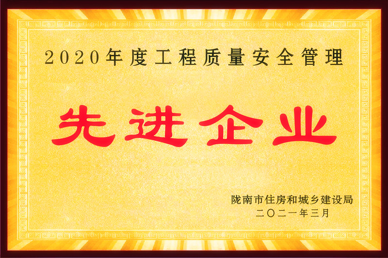 熱烈祝賀懋達(dá)建設(shè)榮獲2020年度隴南市建設(shè)系統(tǒng)工程質(zhì)量安全管理先進(jìn)企業(yè)榮譽稱號
