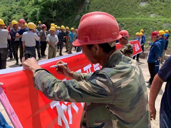 各在建項目與集團(tuán)公司同步啟動安全生產(chǎn)月活動,開展全員安全教育、承諾不違章作業(yè)并做安全承諾簽字。