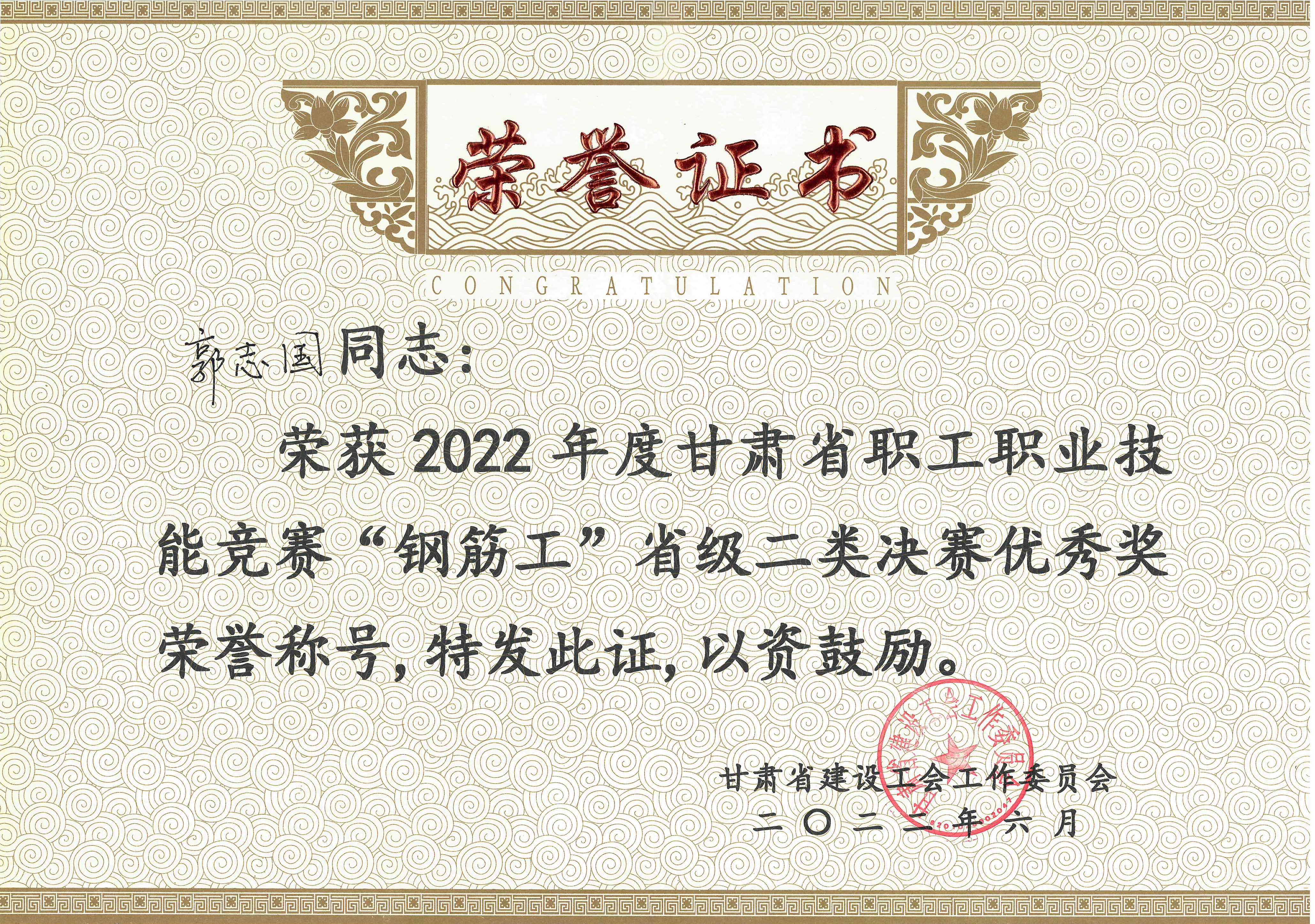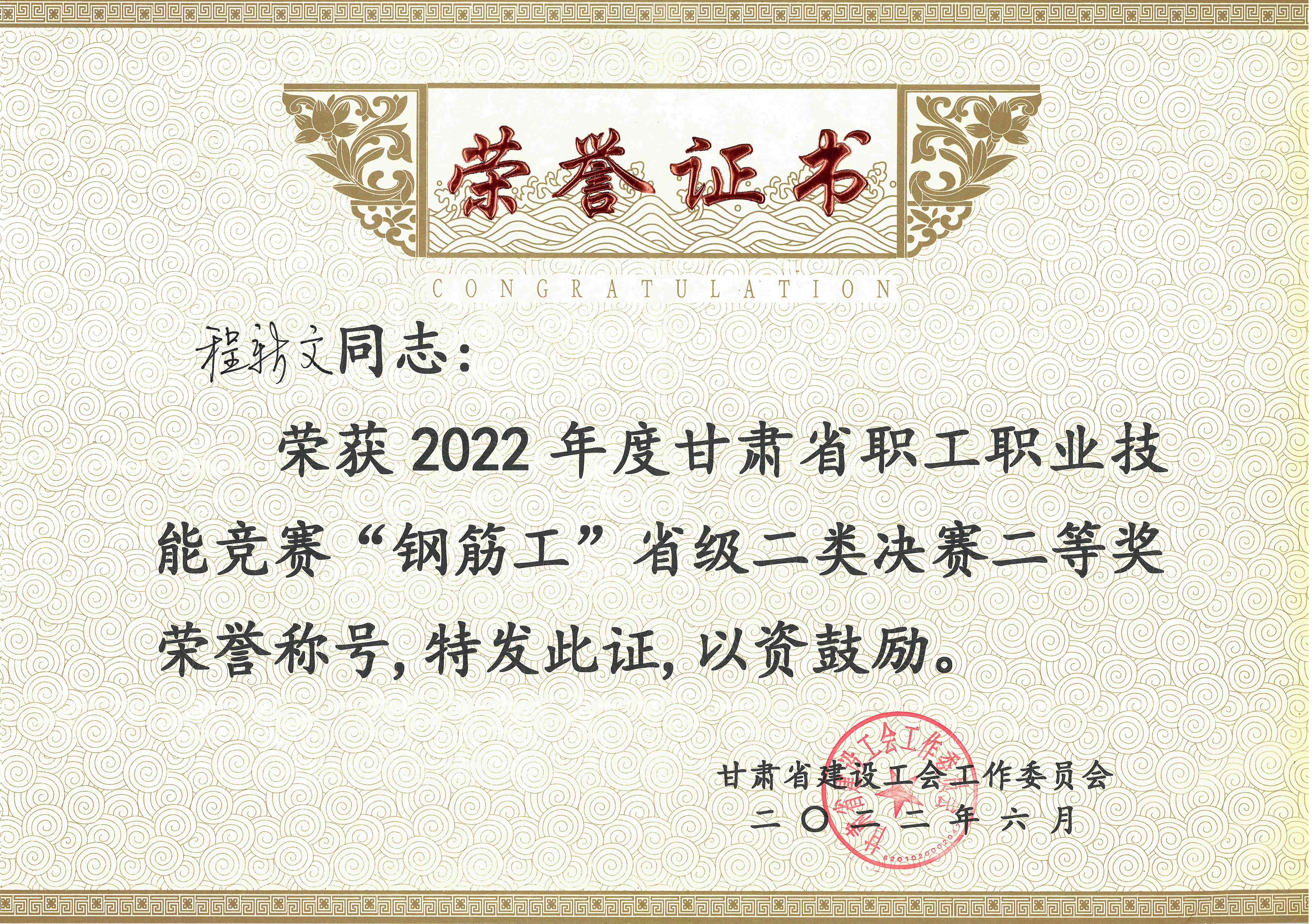 懋達(dá)建設(shè)在2022年甘肅省百萬(wàn)職工職業(yè)技能比賽 “鋼筋工”省級(jí)二類決賽獲得佳績(jī)